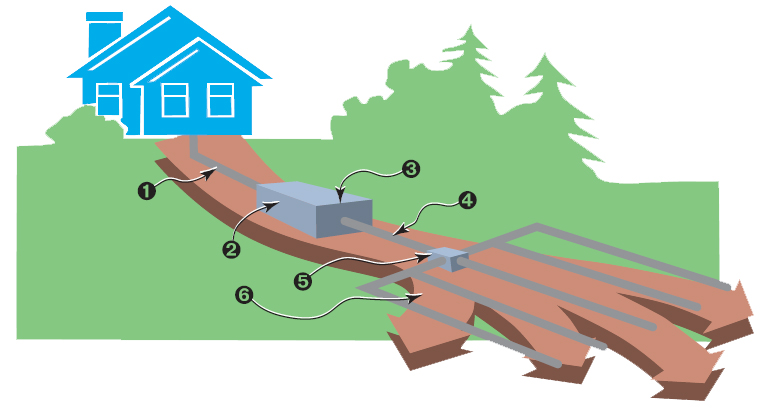 1) A house sewer line carries waste to the septic tank.