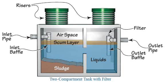 3) As of 2000, all septic tanks have been constructed with outlet baffle filters. The filters must be cleaned at the time of septic tank pumping. Filters may require more repeat cleaning if they clog frequently.